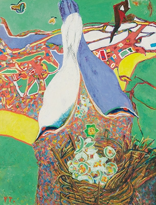 会友「大好きな古木に鳥がやって来た」F80